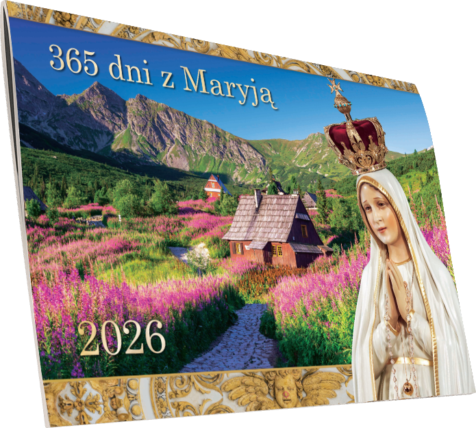 Na każdej stronie naszego Maryjnego kalendarza „365 dni z Maryją” znajduje się wizerunek Matki Bożej Fatimskiej na tle najpiękniejszych polskich krajobrazów.